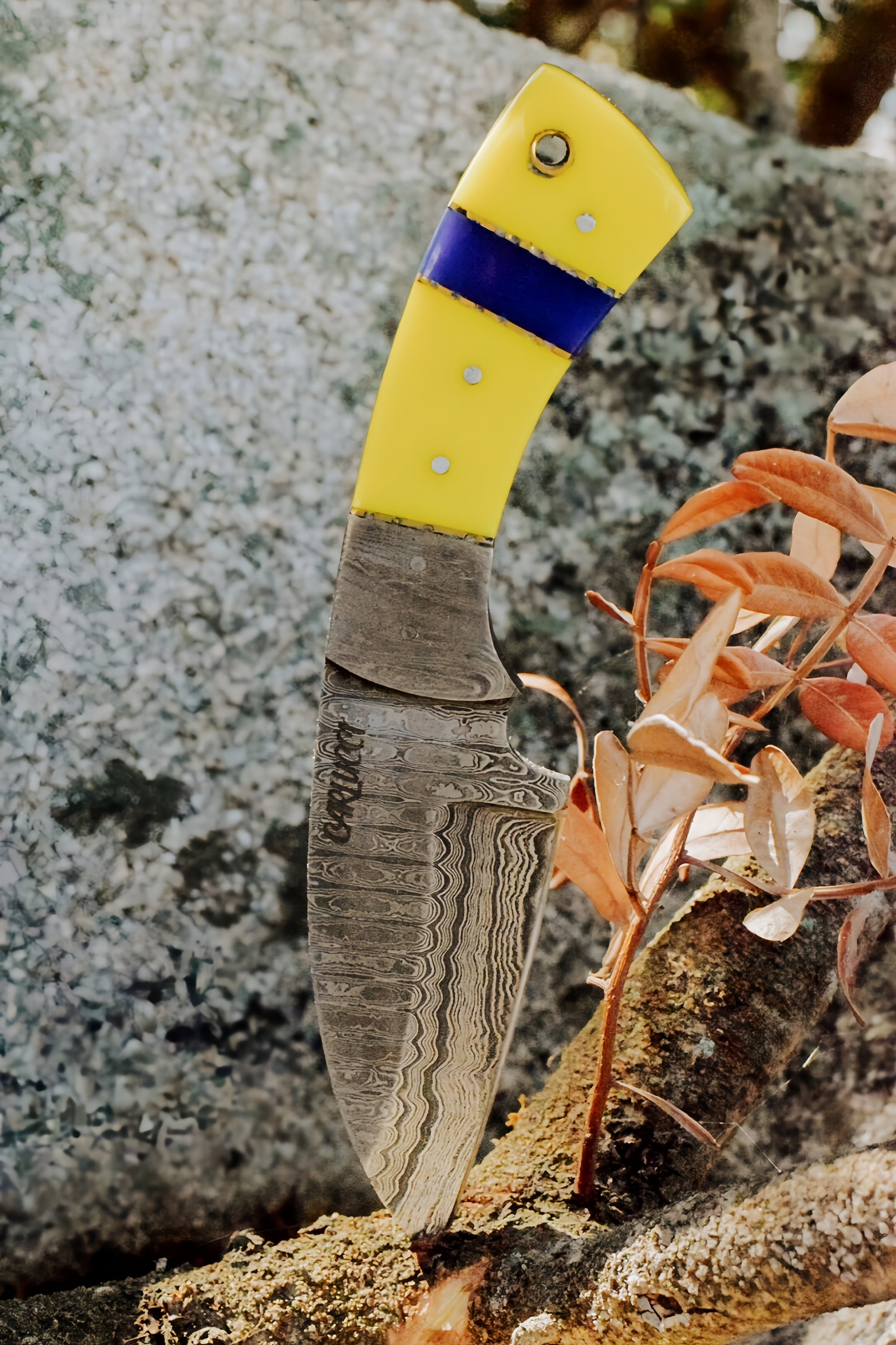U Gravunincu est une pièce artisanal qui associe l’excellence de la lame en acier Damas, reconnue pour sa robustesse et sa finesse de coupe, à un manche unique façonné en résine.